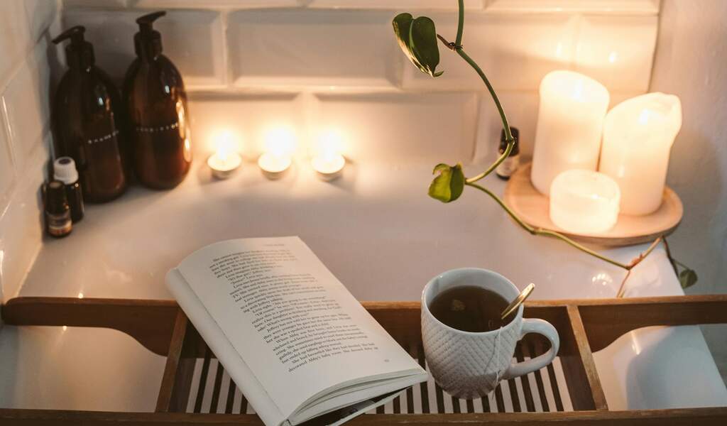 De badkamer is het komende uur jouw plek. Geen kinderen, partners of andere huisgenoten toegestaan dus. Eis lekker dat momentje me-time op (niet storen a.u.b.!) en zorg voor een extra gezellige badkamer. Zet je favoriete playlist op met zachte, relaxerende muziek, dim het licht, ga voor sfeervol kaarslicht en zorg voor een lekkere geur.