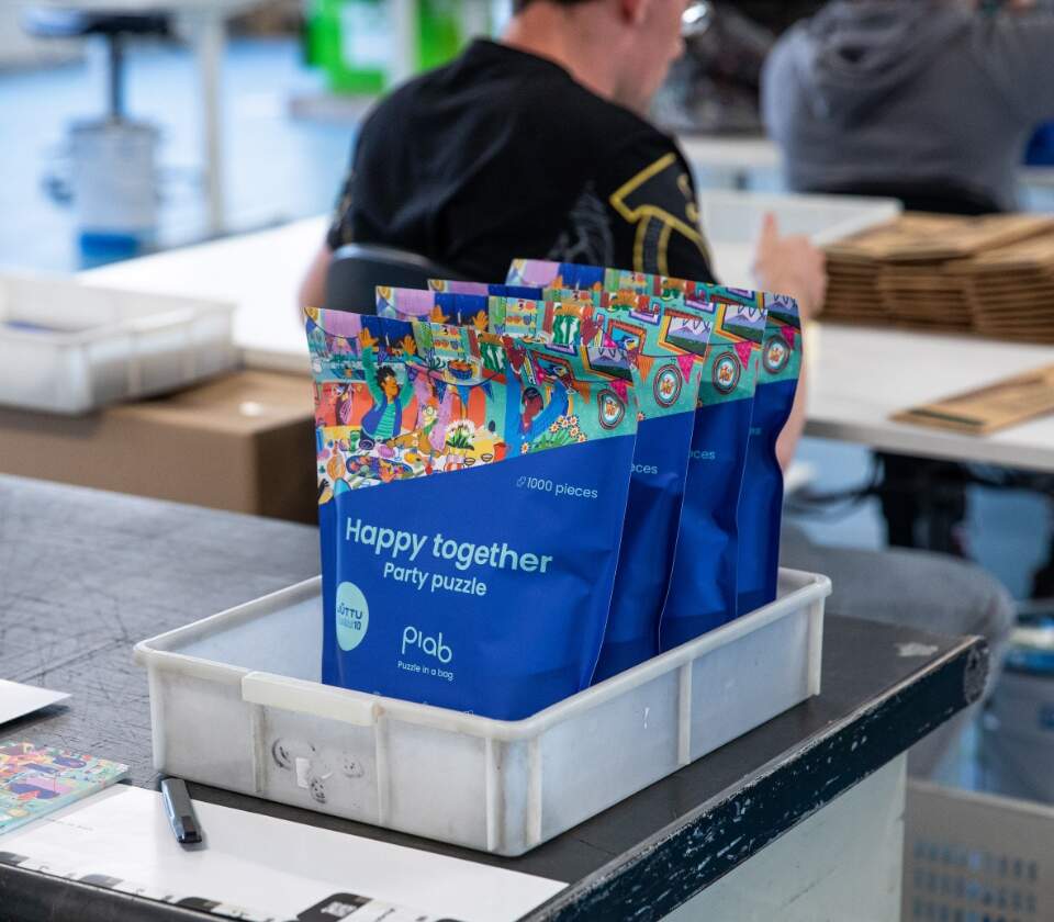 Nick Daelemans: “Zoals de naam al zegt: onze puzzel zit niet in een doos, maar in een hersluitbare zak. Dat concept slaat aan: het springt in het oog, bovendien is het handig om mee te nemen, bijvoorbeeld op reis. En daarnaast zijn onze puzzels allesbehalve saai omdat we coole thema’s uitwerken.”